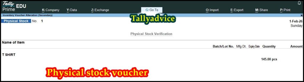 Physical Stock Voucher in Tally prime फिजिकल स्टॉक वाउचर की एंट्री कब करे ?